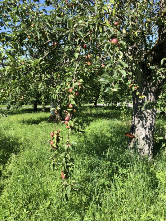 Natürlich gibt es keinerlei Behandlung der Bäume, Blüten und Äpfel - alles gedeiht auf natürliche Art und Weise. Ein Pflegeschnitt erfolgt in der Winterzeit.