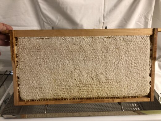 Diese sogenannten Honigzargen werden erst dann abgenommen, wenn der Honig reif und ausreichend trocken ist und die meisten Honigwaben vollständig verdeckelt sind.