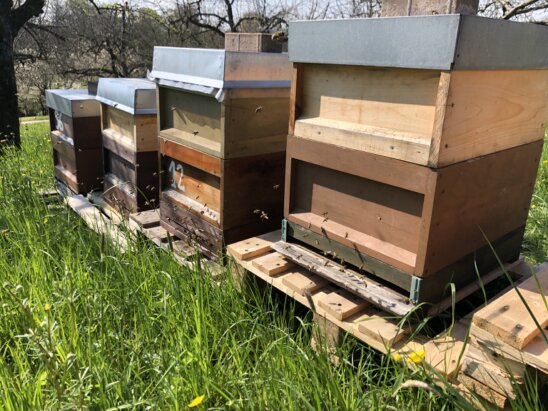 Damit meine Bienenvölker immer genügend Honig für die Eigenversorgung haben, werden die Völker zweizargig geführt, also in zwei Zargen (Kästen) übereinander.